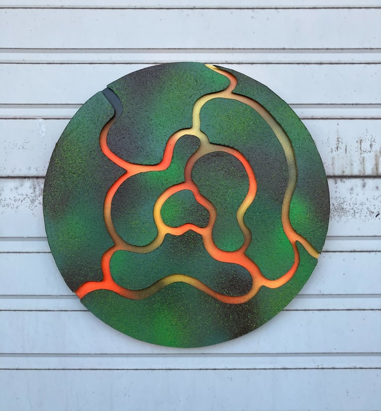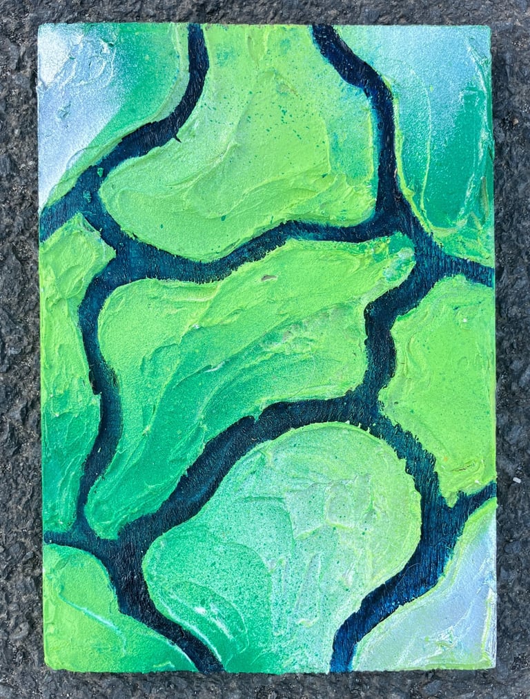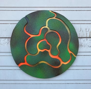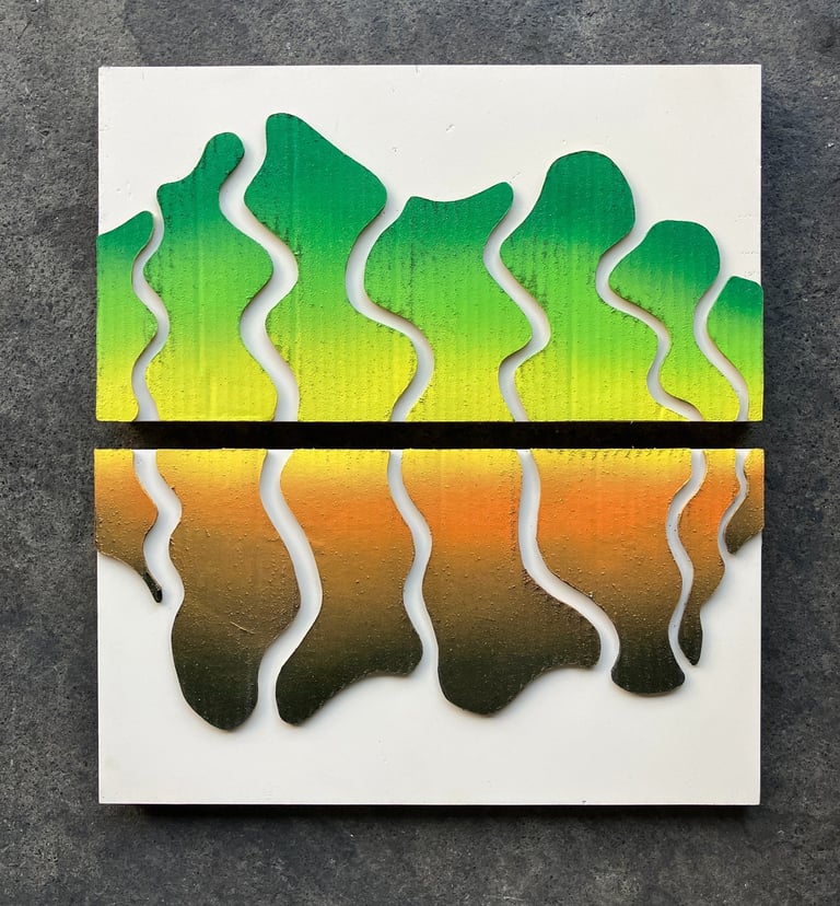 Capitalist society has already produced the necessary components to create art in it’s multitude of iterations. Cardboard often constitutes a large portion of the modern waste/recycling stream. Trees cut down in the name of fiber production afford a perfect medium to manipulate into layered mixed media works. These pieces are formed from salvaged cardboard and “canvas” rescued from extermination.